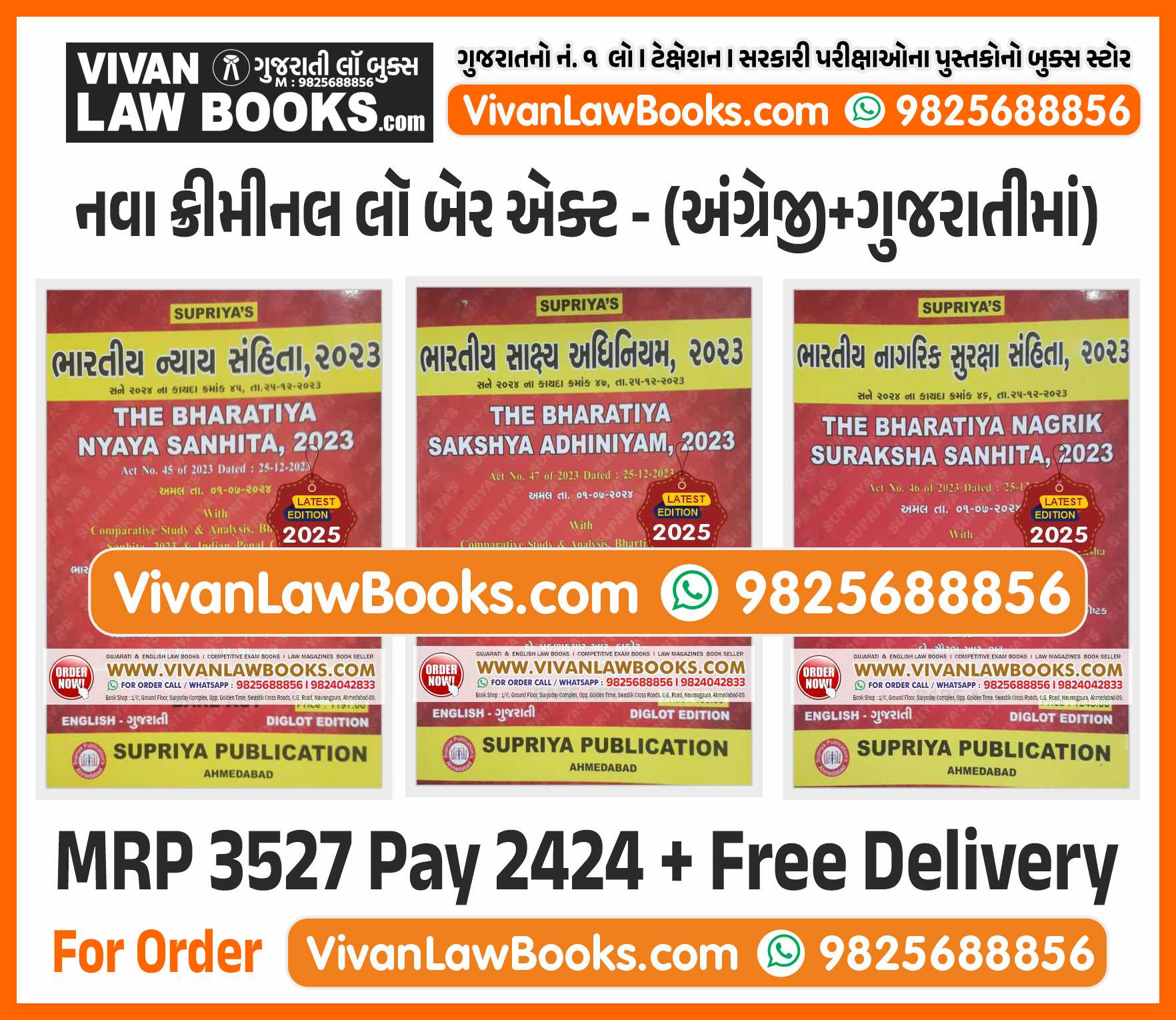 New Criminal Laws ( BNS I BNSS I BSA ) 3 Book Combo in English + Gujarati – Latest 2025 Edition BARE ACTS – Supriya